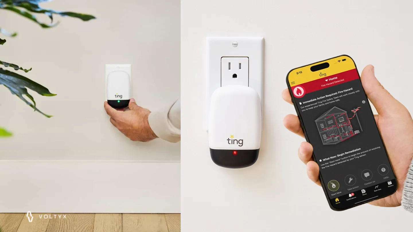 Catch electrical fire risks before they catch you. Ting is a smart plug-in sensor that listens for tiny signs of trouble in your home’s wiring—things like arcing, loose neutrals, failing connections, or device faults—then alerts you before they become a fire hazard. We handle setup, interpret alerts, and fix the underlying issues.